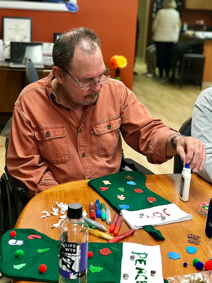 My favorite observations of Robin in TAP Unlimited programs, is his initiative… he arrives first, and wheels himself over to set up the table, anticipating who will need what and what materials will aid in the conversation. When people start arriving, Robin greets them all individually, stopping only briefly to put his coffee cup down on the table. He is generous with his laughter and smiles and has joined the TAPTastics both in practice and in concert! We couldn’t be happier that Robin and his family have joined us at TAP and appreciate all they bring to the family!