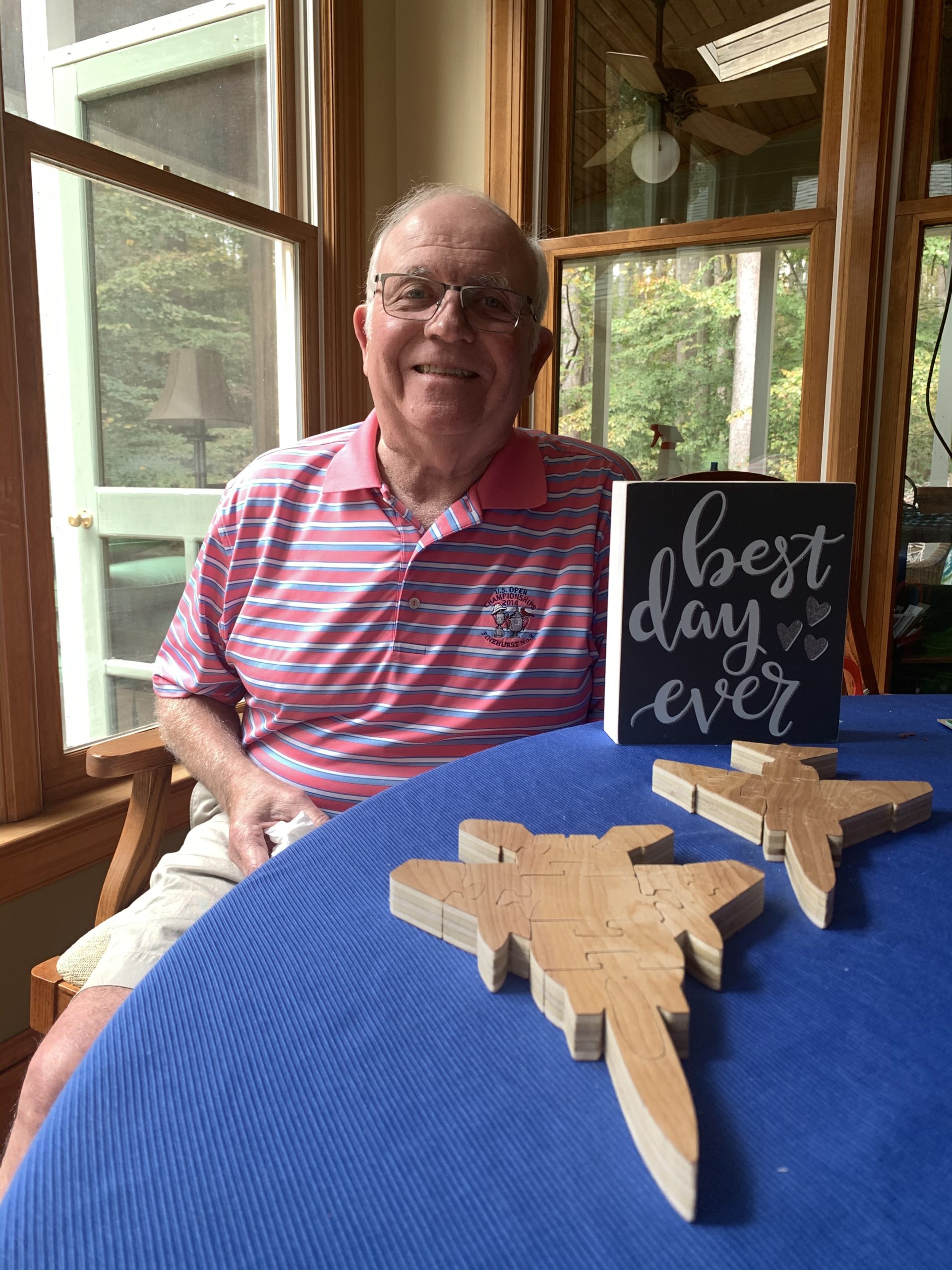 Dick moved from Wake Med Rehab to Bella Rose, an upscale SNF in Garner, NC, on September 25. During that time, my sister Ginga and her husband Owen, who own a renovation business, went to our Raleigh home and make changes so that our home would be safe & accessible for Dick. During the three weeks he was at Bella Rose, he participated in OT (Kaitlyn), PT (Savannah), and Speech Therapy (Kathy). He came home from Bella Rose on October 18, 2019. In late October, Dick continued to receive out-patient OT (Alli), PT (Sam), and Speech/Language Therapy (Lorraine) at Steps for Recovery. Today, he has progressed from knowing, but not being able to state his own name, to conversation, from not swallowing to a regular diet, and from not moving to walking and playing golf once a week! He has “graduated” from both OT and PT.